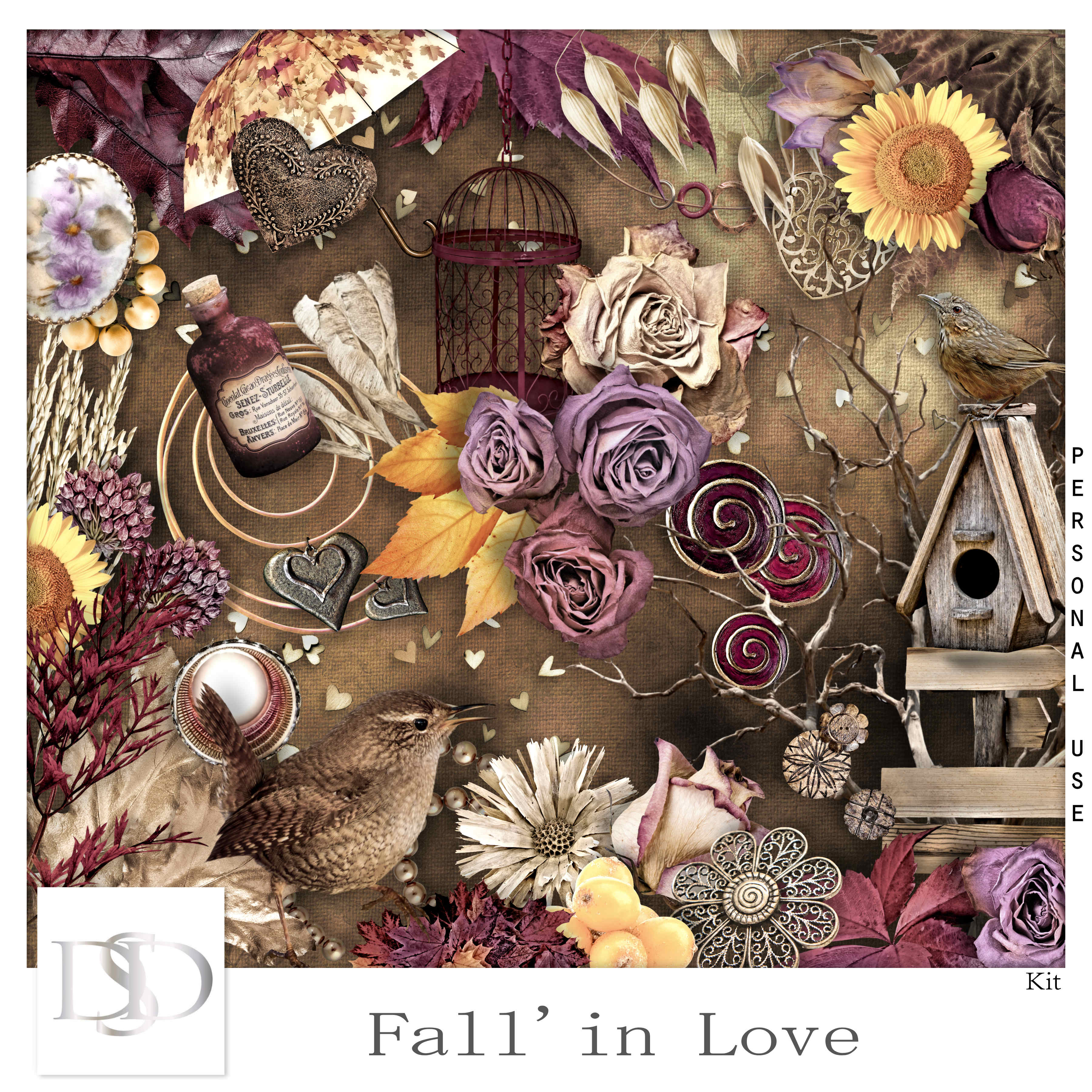 14 beautiful solid papers matched with kit "Fall'in Love""